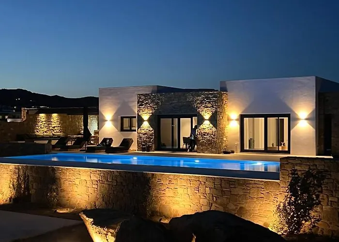Gelegen in einer Entfernung von 4 km vom Strand von Ftelia, bietet die 4-Zimmer- Villa Taiyo Mykonos Super Paradise Beach Zugang zu einem privaten Swimmingpool. Die Villa strandnahe befindet sich nur 10 Minuten Autofahrt von der Panagia-Paraportiani-Kirche entfernt und verfügt über eine Terrasse.